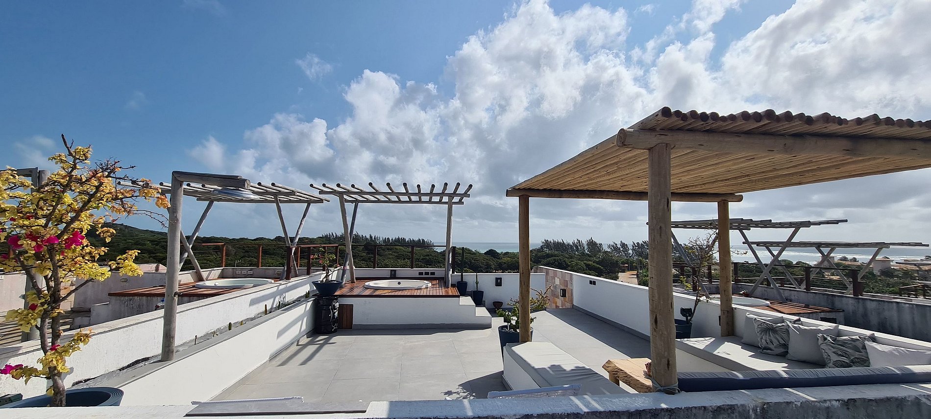 possuimos tudo o que vc precisa, tv, conhinha completa e estamos no ponto mais alto do condominio com uma vista mar e da piscina incriveis